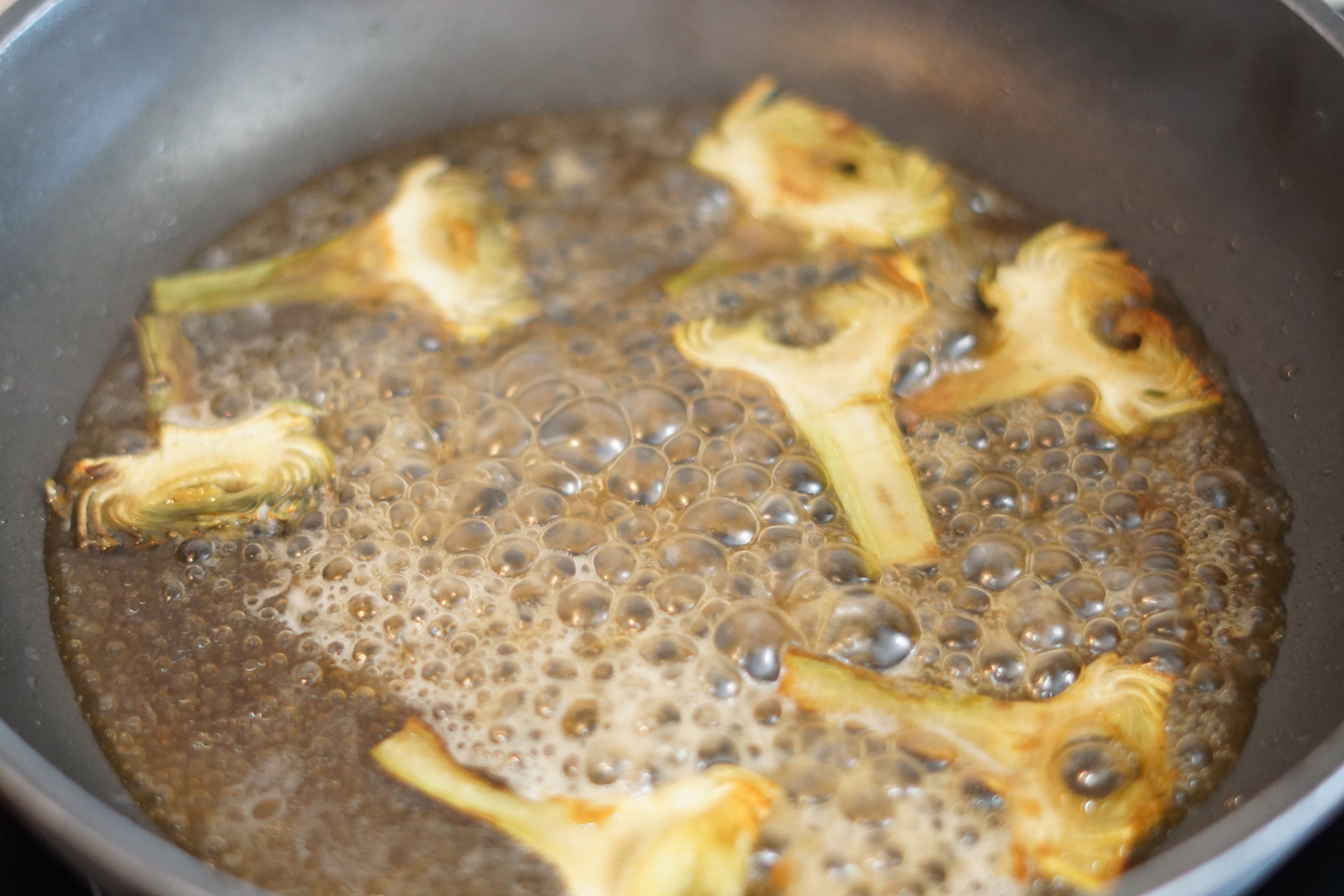 4. Plate the artichokes with the reduced juice.