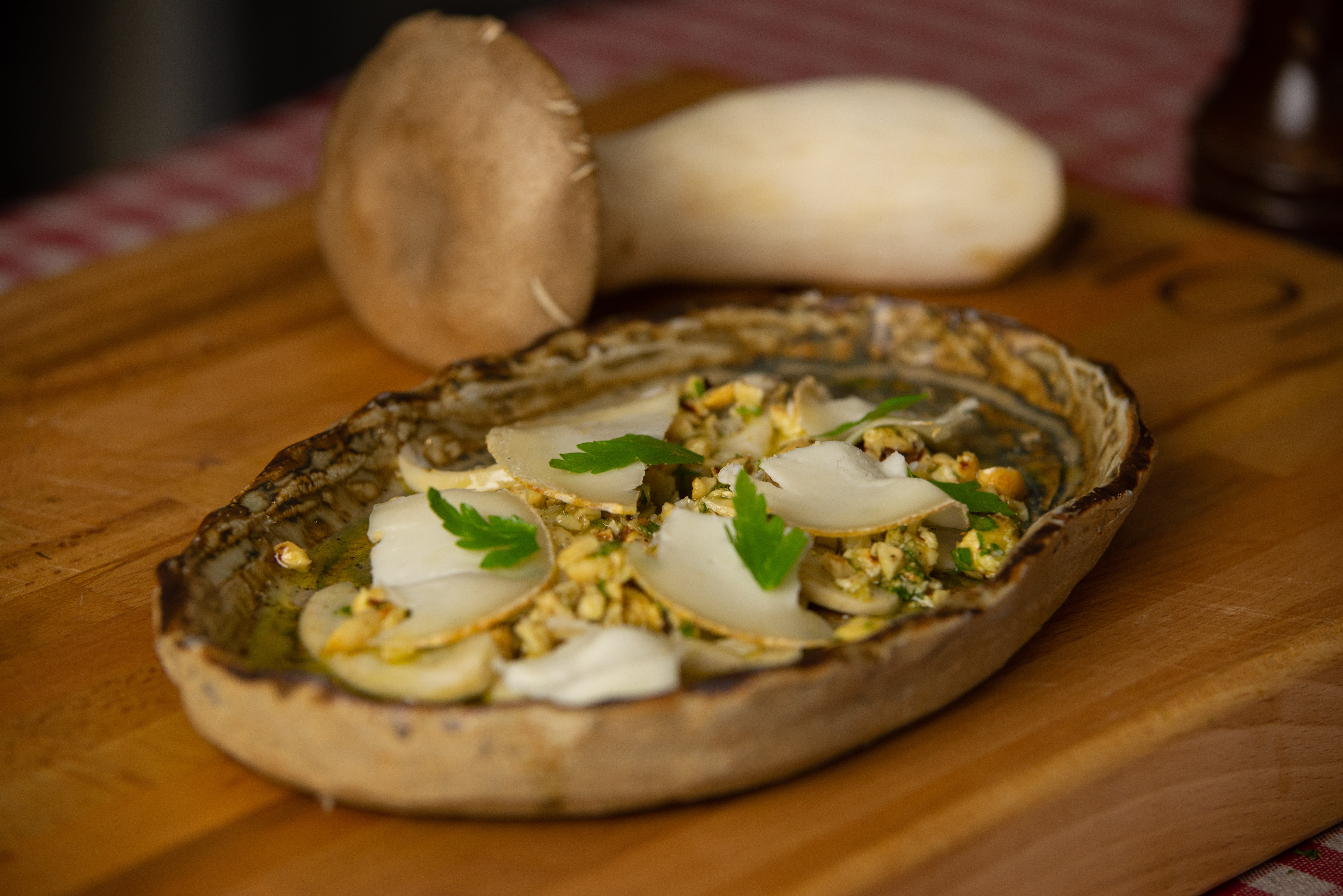A refined, plant-forward starter that showcases the delicate texture of eryngii mushrooms, enhanced by nutty hazelnuts and aged sheep cheese. Eryngii, also known as king oyster mushroom, lends itself beautifully to raw-style preparations. This carpaccio is light yet full of character, perfect for an elegant start to any meal.