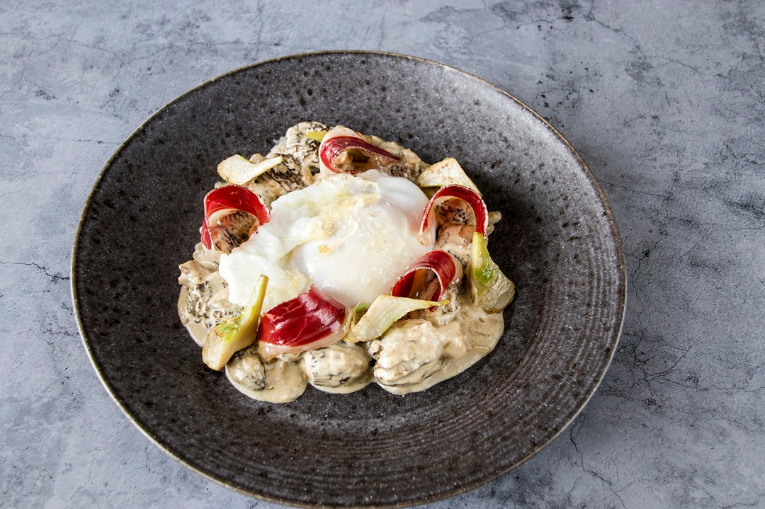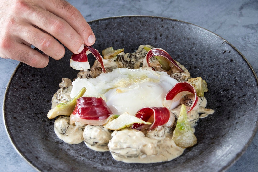 A sophisticated dish where the richness of goose egg meets the earthy elegance of Laumont morels, tender artichokes, and fine slices of duck ham. A refined composition perfect for lovers of seasonal gastronomy and exceptional ingredients.