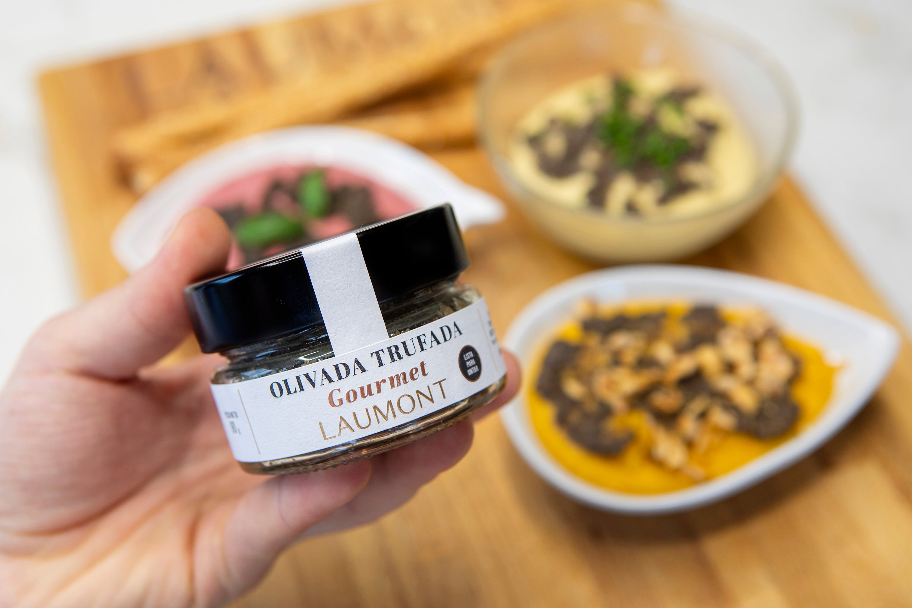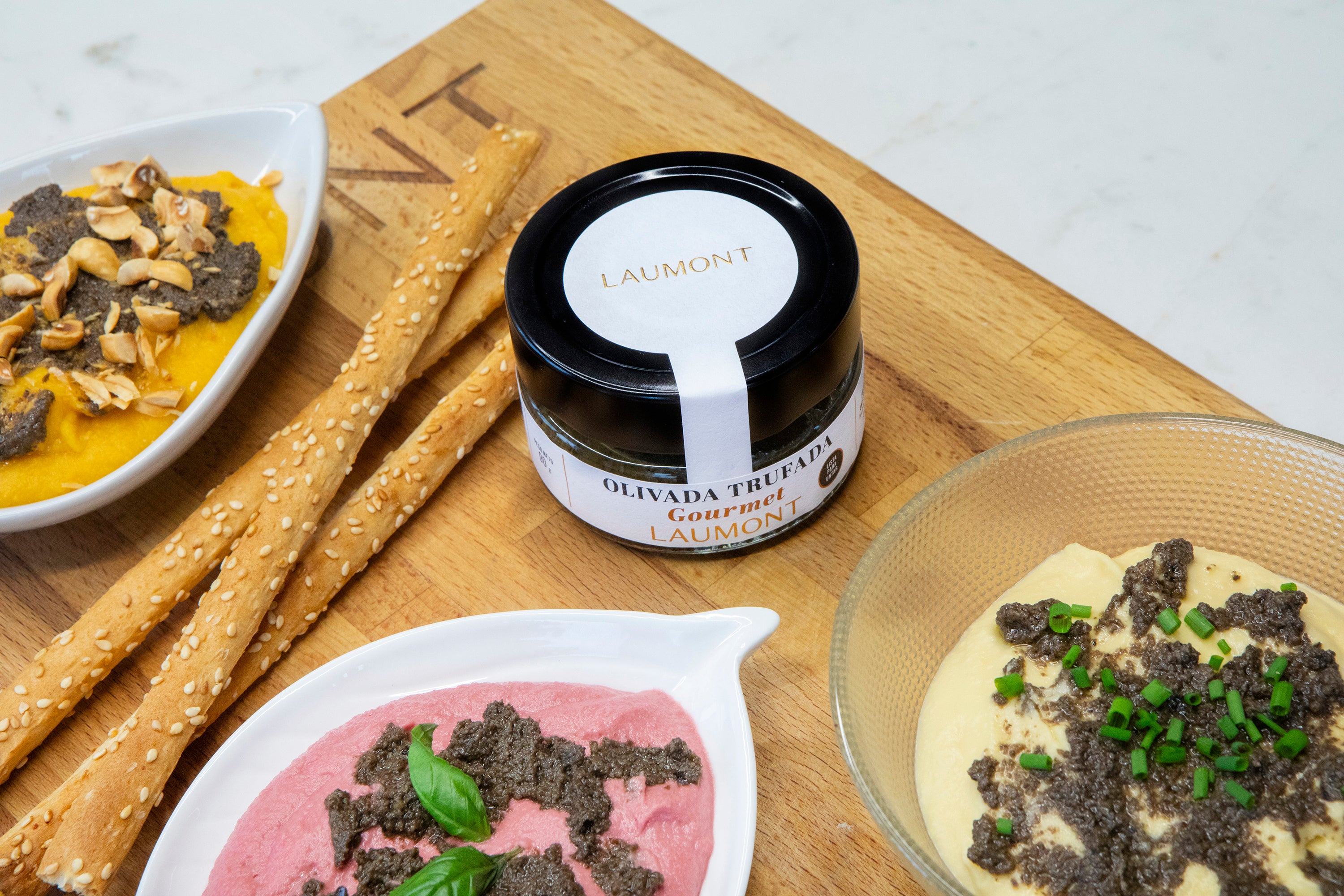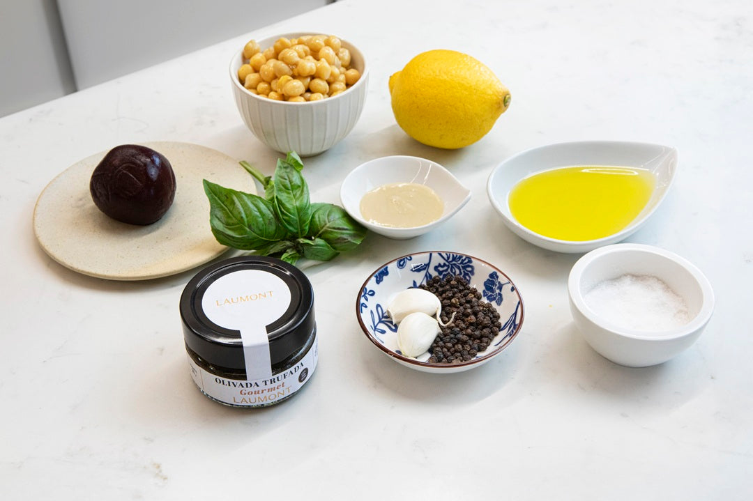 Colorful hummus with truffled olive spread is a gourmet recipe that reinvents classic hummus with three vibrant variations: traditional, beetroot, and carrot. As a final touch, we add Laumont’s Truffled Olive Spread, infusing the dish with an intense truffle aroma and a sophisticated flavor. At Laumont, specialists in truffles and mushrooms, we invite you to discover this unique combination, perfect for impressing on any occasion. A true delight for truffle lovers!