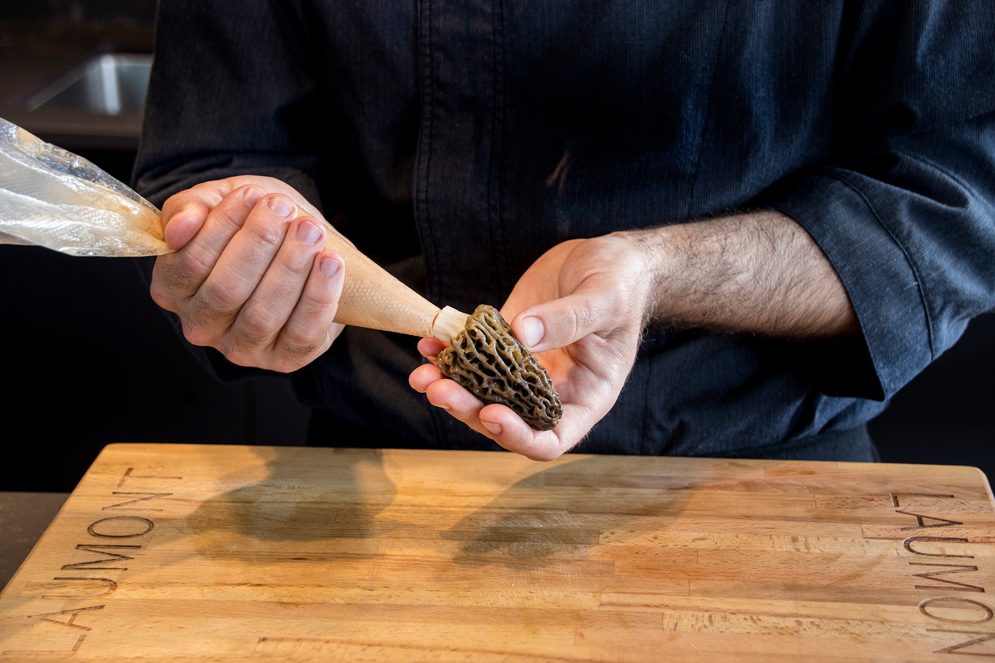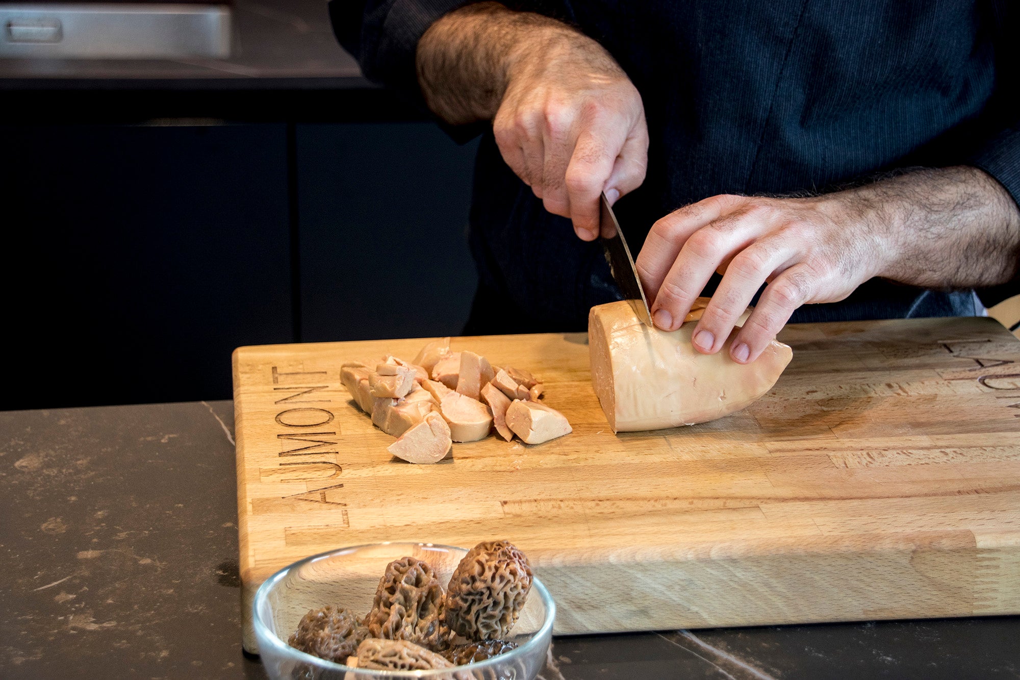 An exquisite dish that highlights the deep flavour of Laumont morels, delicately filled with duck foie gras and simmered in a velvety cream and cognac sauce. Ideal for refined occasions or as a luxurious starter.