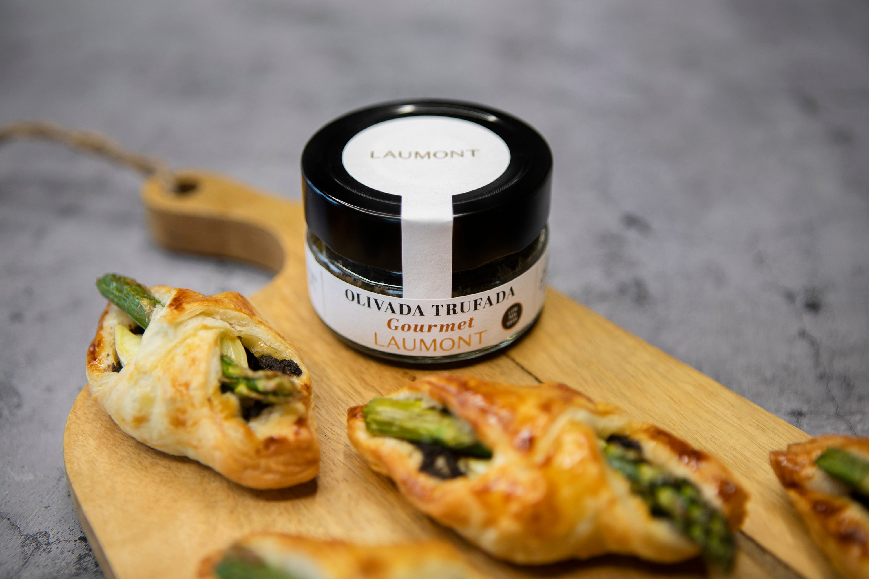 This puff pastry appetizer with truffled olive spread, brie, and asparagus is a delicious and elegant option for any occasion. The combination of Laumont's truffled olive spread with creamy brie cheese and golden asparagus, all wrapped in crispy puff pastry, offers an explosion of flavors and textures that will surely impress your guests. A simple yet flavorful recipe!