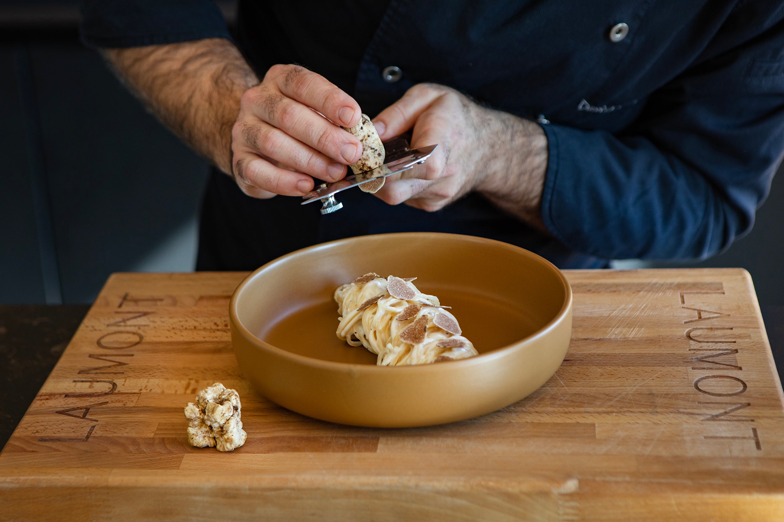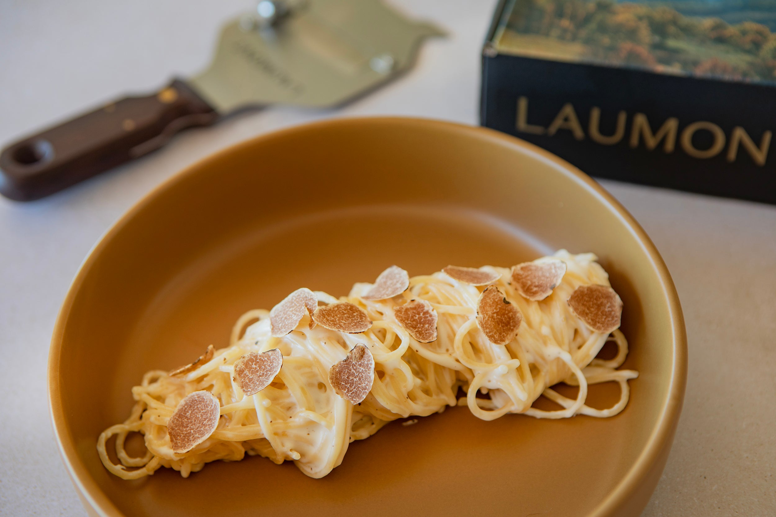 This recipe for cacio e pepe spaghetti with white truffle elevates a classic of Italian cuisine with an exceptional ingredient: Laumont's Tuber Magnatum white truffle. The simplicity of the pasta, Pecorino cheese, and black pepper merges with the aromatic intensity of the truffle, creating a dish of pure and sophisticated flavors. Ideal for food lovers looking to impress with the essentials.
